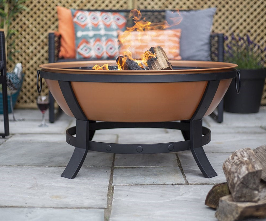 he Katori Firepit is a beautifully crafted deep bowl firepit that combines a rich copper-effect finish with sleek black steel legs. Its classic design and generous size make it an ideal centerpiece for any outdoor space, creating a warm, inviting atmosphere for social gatherings and family moments. Perfect for extending those cozy evenings, the Katori Firepit brings both style and function to your patio, becoming the focal point of every occasion.